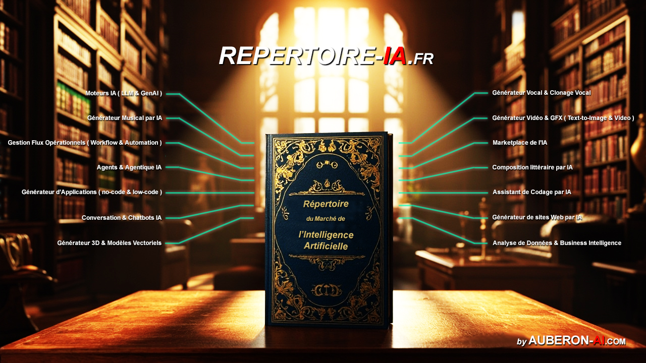 REPERTOIRE-IA.FR est un annuaire dédié à l’intelligence artificielle qui recense une large sélection d’outils IA en français et anglais pour professionnels, étudiants ou curieux du secteur. La plateforme aide à découvrir, comparer et choisir des solutions IA adaptées à divers besoins : rédaction, analyse, automatisation, productivité ou éducation. Chaque outil est présenté avec ses fonctionnalités clés, avantages et modes d’usage, permettant d’optimiser ses recherches et de gagner du temps dans la sélection de l’outil pertinent. L’objectif est de faciliter l’accès à la technologie IA en France pour améliorer l’efficacité professionnelle au quotidien.
